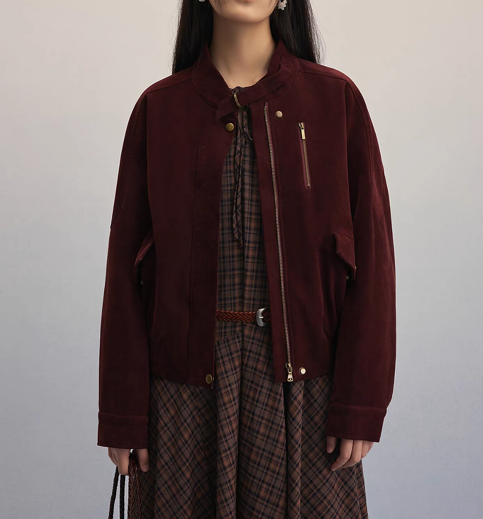 Bordeaux synthetic leather suede elastic trim pilot jacket