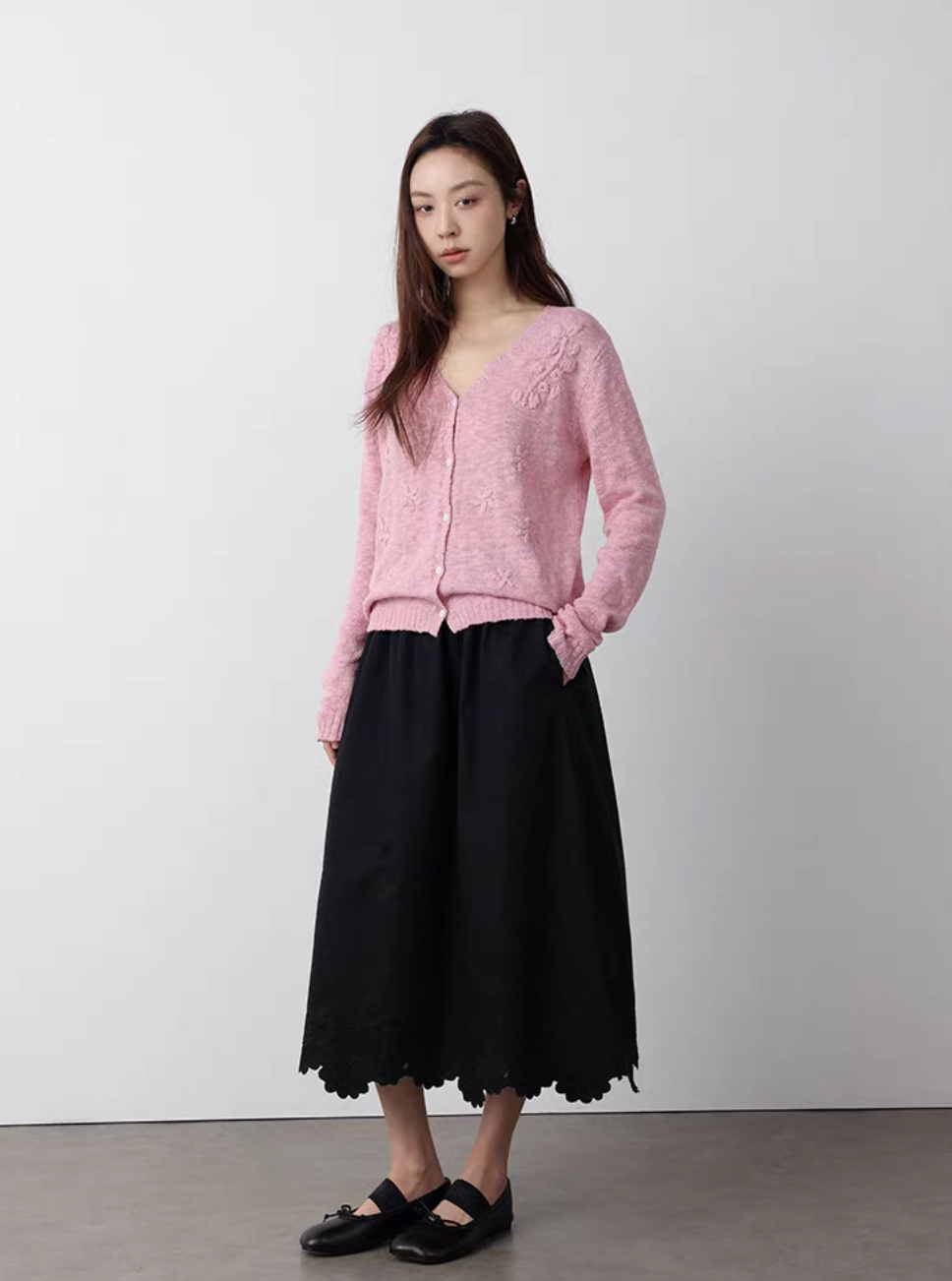 Black pleated cotton A line skirt
