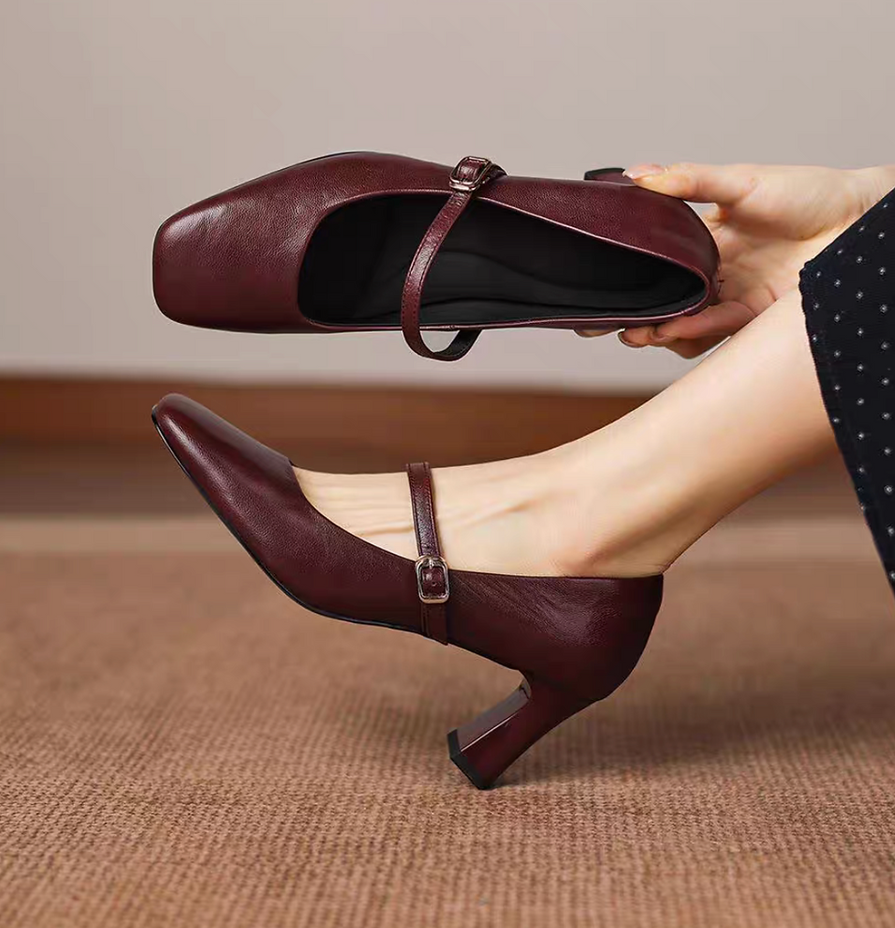 Lambskin square toe high heel Mary Janes