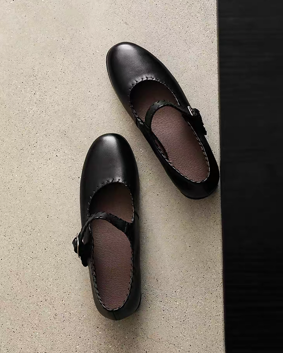 Oil waxed lambskin elastic rim embossed Mary Janes