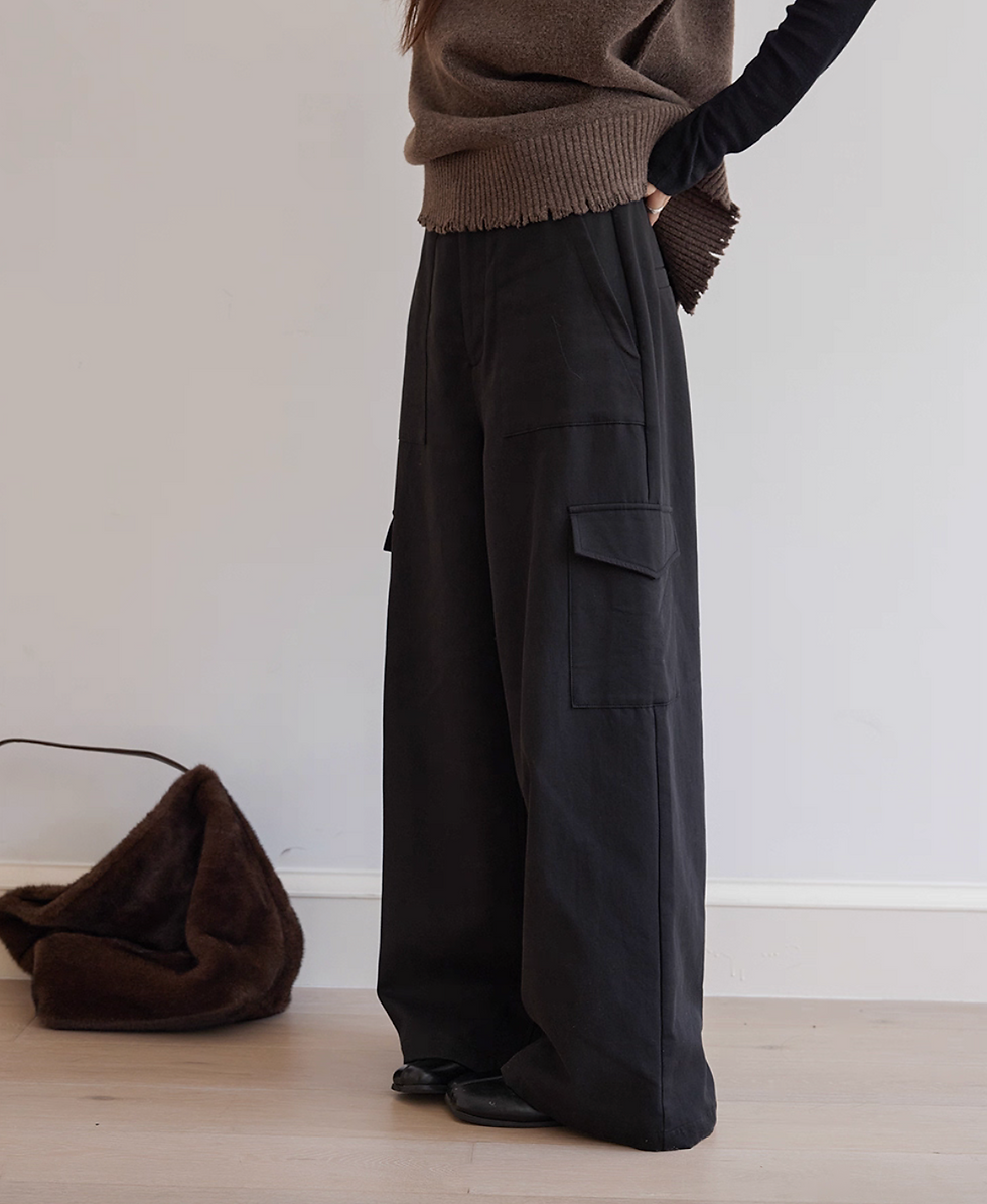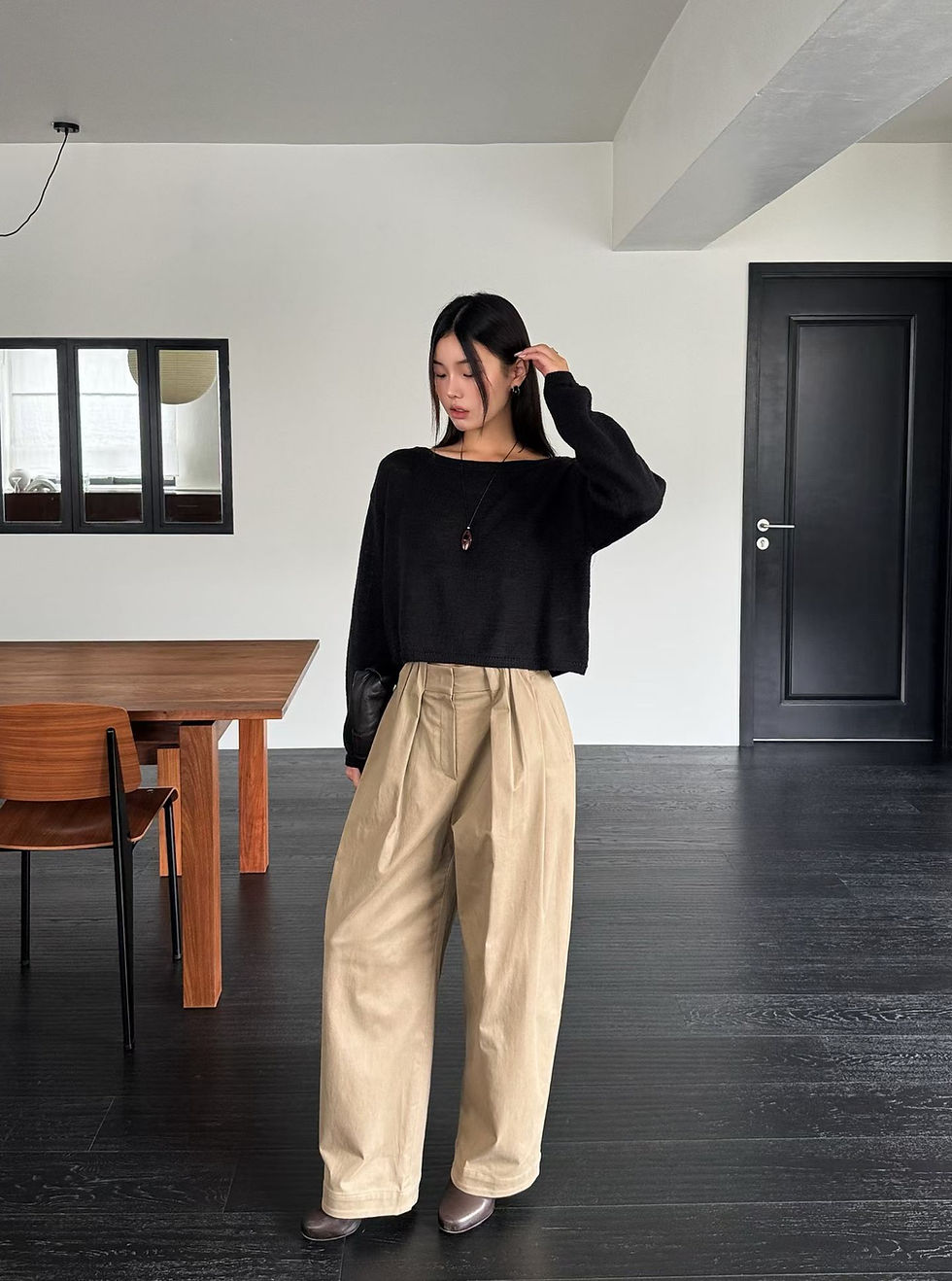 Back stitched pockets cotton denim high waisted straight pleated pants