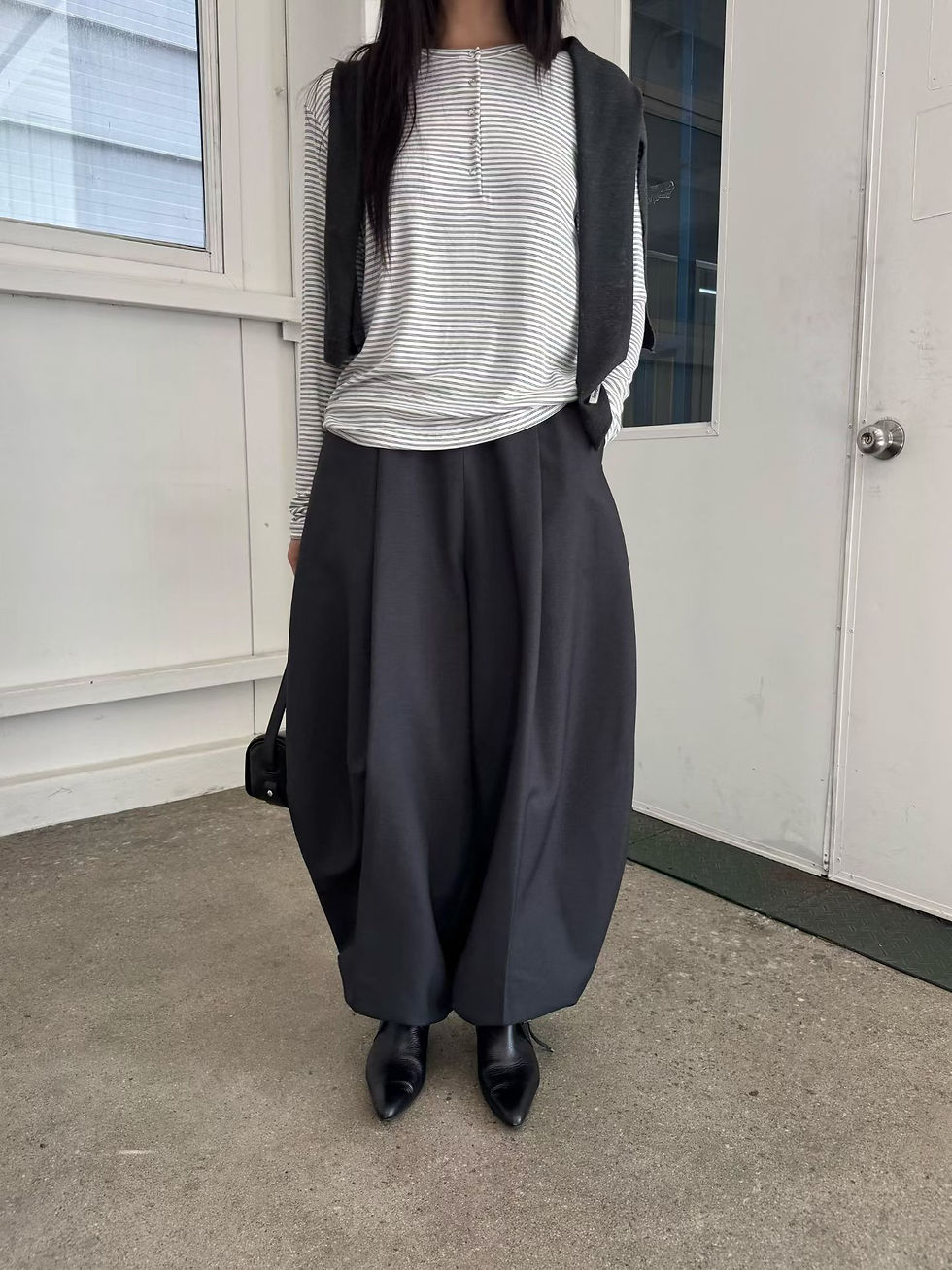 High waisted grey cotton wool rayon pleated straight pants
