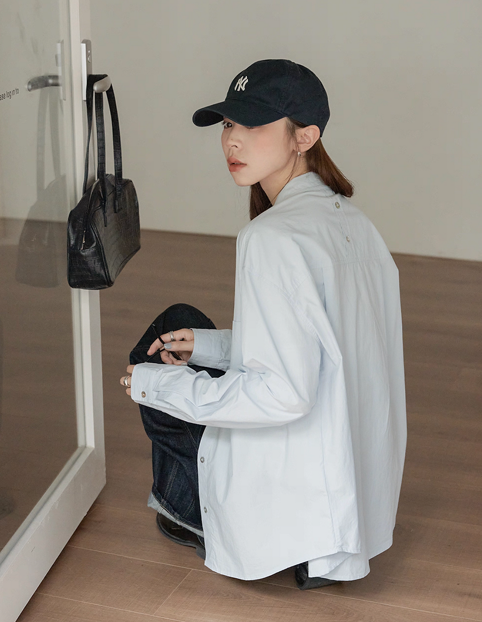 Shell buttoned pocket back buttoned cotton mid length shirt