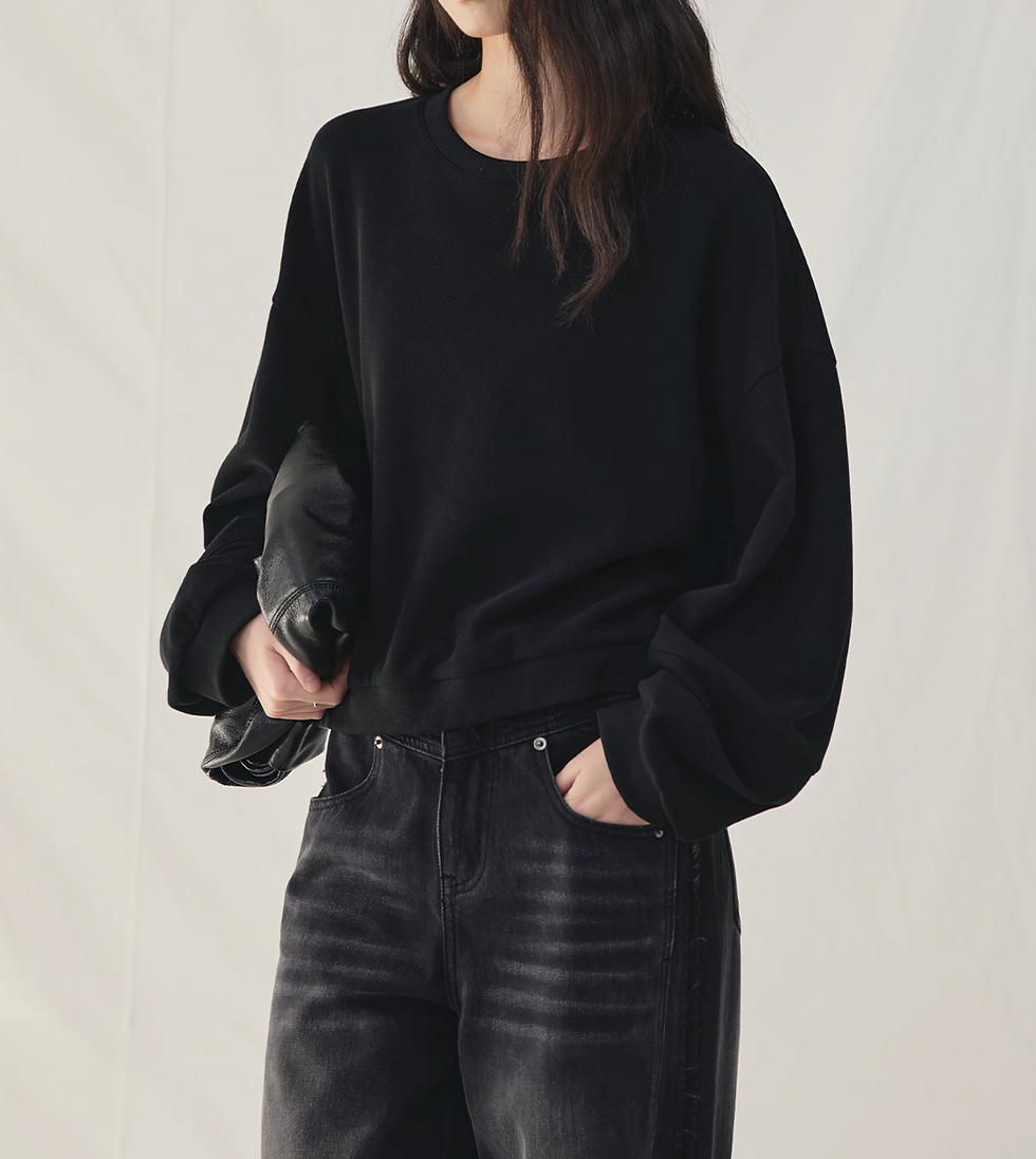 Good Vibe fleece lined embroidered cotton contour raglan balloon sleeves